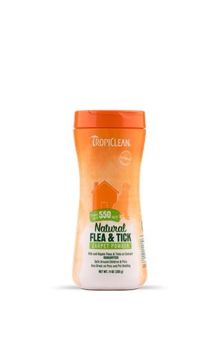 TropiClean přírodní pudr na koberce proti blechám a klíšťatům hubí blechy a klíšťata z koberců a čalounění. Je to silné a přírodní složení, které působí po dobu až 30 dnů. Naše unikátní složení zahrňuje hydrogenuhličitan sodný (jedlá soda), které pracuje na odstranění pachů a zanechává příjemnou vůni. TropiClean pudr na koberce lze použít i na psy a psí pelechy.