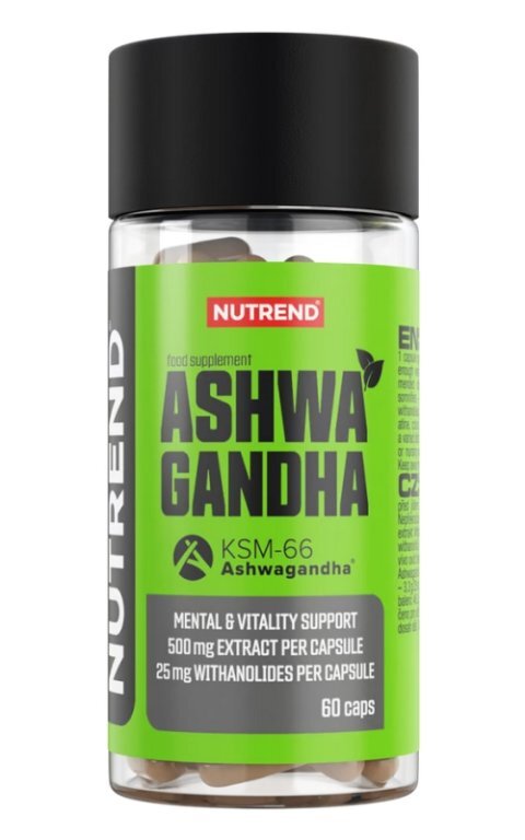Rostlinný extrakt pro výkon i relaxaci Udržení rovnováhy a to i ve chvílích silného fyzického i emocionálního vypětí podpoří extrakt z byliny Ashwagandha. S oblibou se používá pro podporu sportovního výkonu díky příznivému působení na funkci svalů, koncentraci a pozitivnímu vlivu na vitalitu a energii.Již řada studií prokazuje pozitivní efekt Ashwagandhy na kvalitu spánku či podporu duševního zdraví, což může hrát důležitou roli při zvládání nadměrné stresové zátěže. Ashwagandha přináší celou řadu benefitů pro váš well-being.Doporučené dávkování: maximálně 1 kapsle denně, před jídlem. Zapijte dostatečným množstvím vody. Nepřekračujte doporučené dávkování.Upozornění: doplněk stravy. Nenahrazuje pestrou stravu. Není určeno pro děti, těhotné a kojící ženy. Ukládejte mimo dosah dětí. Chraňte před teplem, mrazem a vlhkostí.Složení: extrakt Withania somnifera - Ashwagandha (5 % withanolidů), inulin, želatinová tobolka (želatina, barvivo oxid železa).