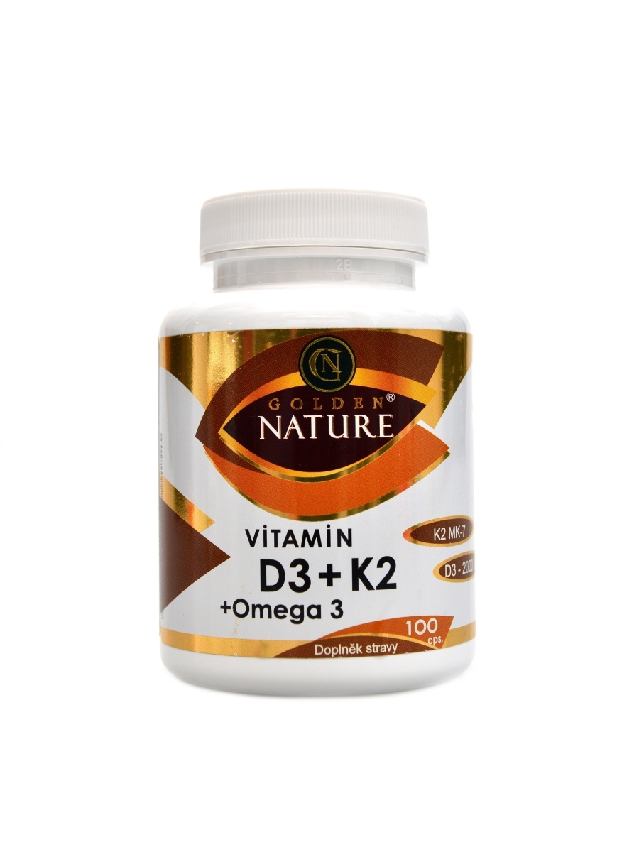 Golden Nature - Vitamín D3 2000 IU + K2 MK7 + Omega 3 100 cps