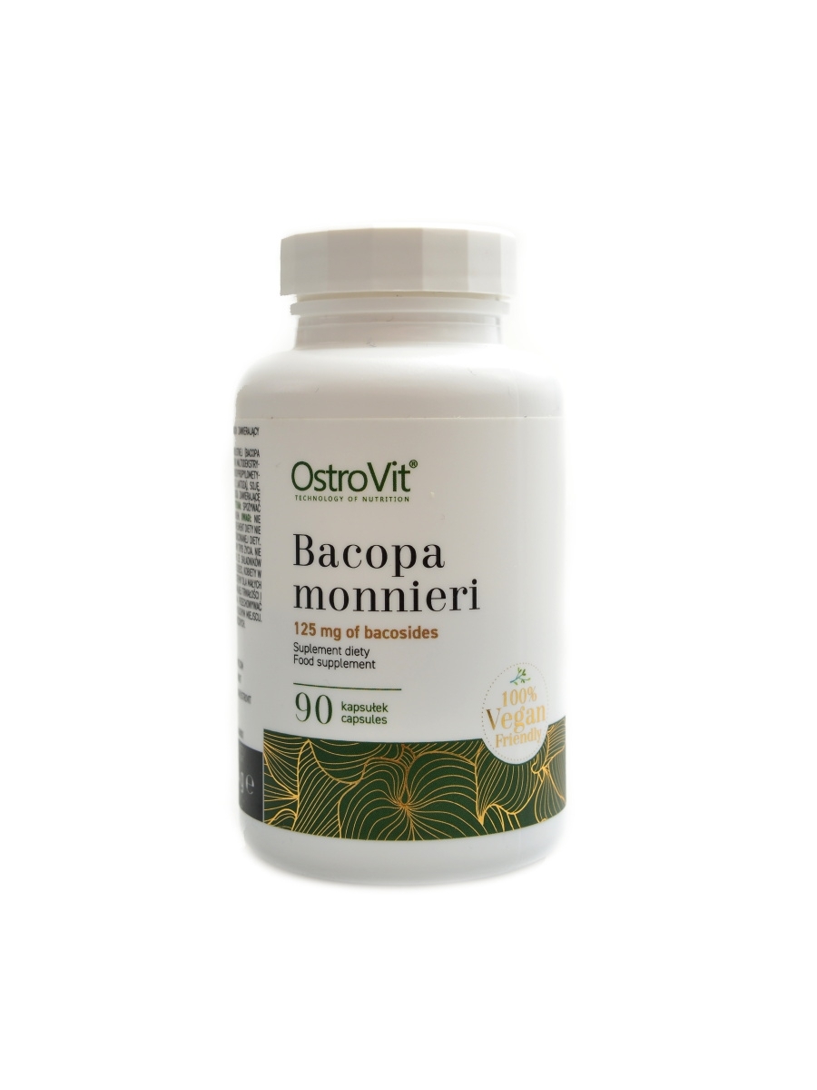 OstroVit Bacopa Monnieri VEGE je vysoce kvalitní doplněk stravy, který obsahuje extrakt bacopa monnieri standardizovaný na 50 % bacosidů. Jedná se o veganský přípravek, dostupný ve formě snadno polykatelných kapslí, vytvořený pro lidi, kterým záleží na doplňování každodenní stravy o přírodní a hodnotné suroviny.