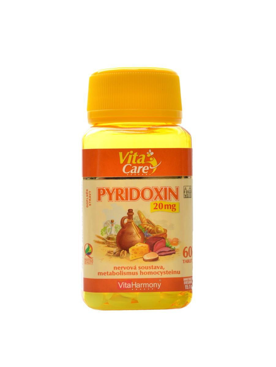 Pyridoxin neboli vitamin B6 patří do skupiny vitaminů rozpustných ve vodě. Pyridoxin podporuje normální funkci imunitního systému, čímž stimuluje přirozenou obranyschopnost. Pyridoxin přispívá k normální psychické a nervové činnosti. Pyridoxin napomáhá normální tvorbě červených krvinek, které přenáší kyslík po celém organismu. Díky tomu pyridoxin podporuje snížení míry únavy a vyčerpání. Pyridoxin přispívá k normálnímu metabolismu homocysteinu, což je toxická látka, která přirozeně vzniká v organismu. Vitamin B6 přispívá k přeměně homocysteinu na netoxický cystein. Celý metabolismus homocysteinu je vedle pyridoxinu podporován také vitaminem B12 a kyselinou listovou.