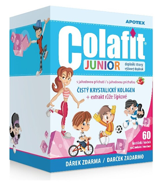 Doplněk stravy Colafit Junior s jahodovou příchutí obsahuje čistý krystalický kolagen a extrakt růže šípkové. číst celé