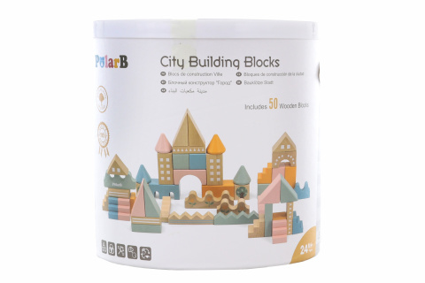 Dřevěná stavebnice v kyblíku. Obsahuje 50 dílků a obrázkovou brožuru s návody na stavění. Rozměry balení cca 18 x 18 cm. Velikost kostek 2,5 - 9 cm dle druhu. Věk 2+
