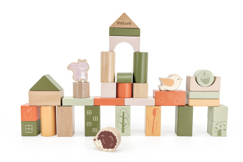 Dřevěná stavebnice se zvířátky. Balení obsahuje 50 dílků různých tvarů. Rozměry balení cca 23x14x6,5 cm. Věk 2+ číst celé