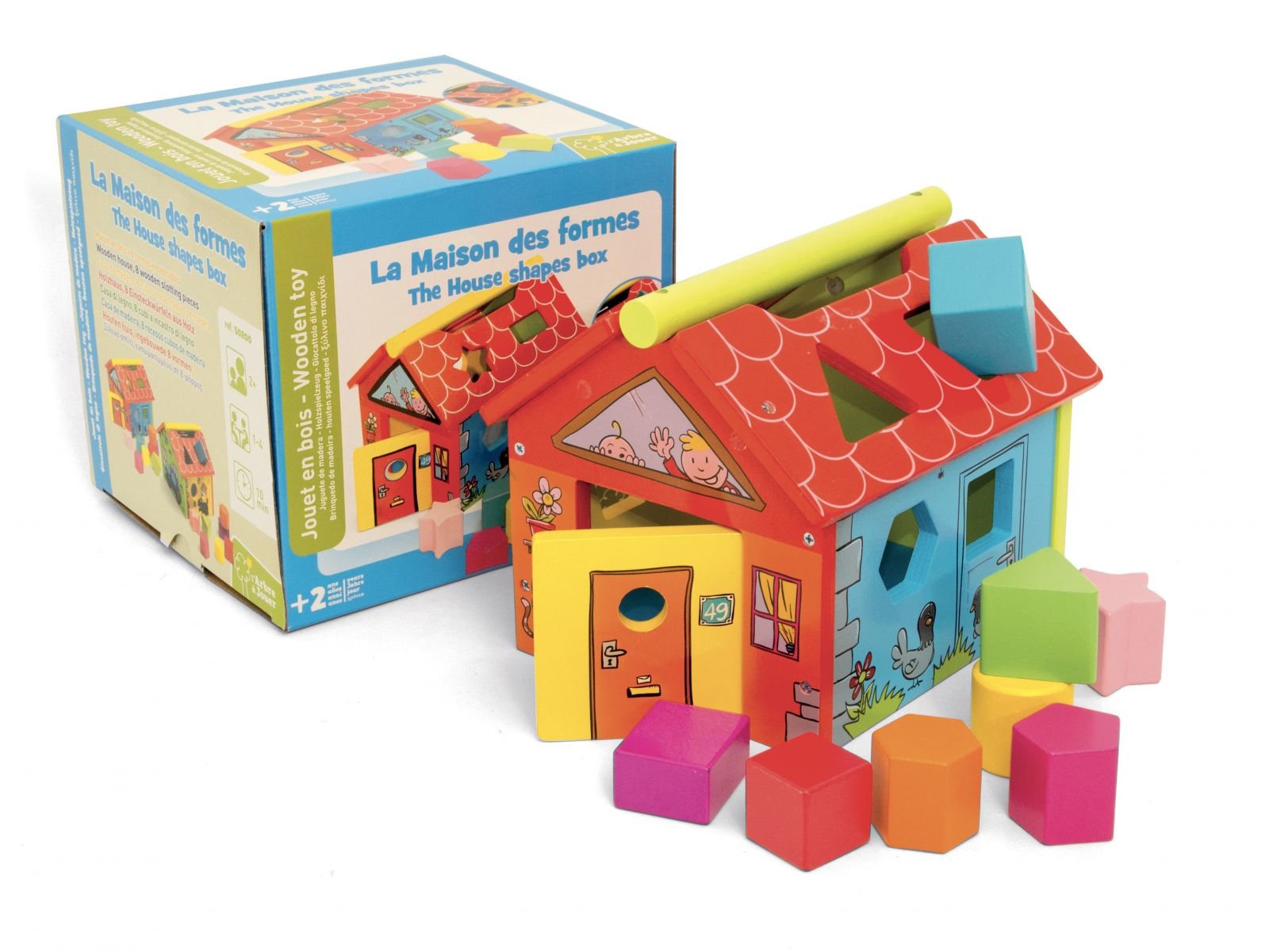 Pestrobarevný domeček s vkládacími kostkami. Balení obsdahuje 8 kostek různých tvarů. Francouzská značka Jeujura se specializuje na výrobu dřevěných domečků a švýcarských chat, vyrábí ale také dětské tabule a další dřevěné hračky. Jeujura vyrábí své hračky ze dřeva z místních lesů (Jura kurz). číst celé