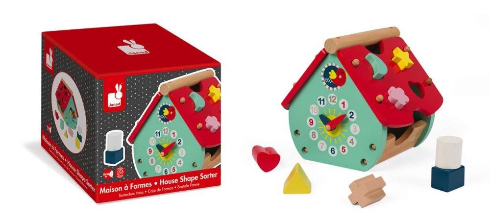 Dřevěný domeček pro vkládání tvarů Baby Forest Janod 8 vkládacích kostek od 1 roku