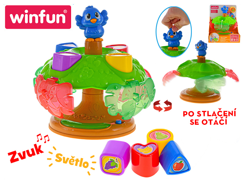 Vkládačka strom skvělé zabaví malé neposedy. Strom o rozměrech 21x21 cm je otočný. Vkládačka je na baterie, je vybavena různými zvuky a světelnými efekty. S touto hračkou se děti nudit nebudou. Vhodné pro děti od 6 měsíců.