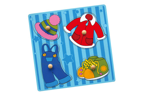 Dřevěná vkládačka oblečení. Rozměry dřevěné desky cca 22 x 22 cm. Rozměry balení cca 22 x 22 x 1 cm. Věk 12m+ číst celé
