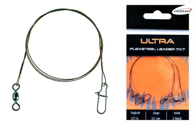Ocelová lanka Climax jsou extrémně odolná a poskytují vysokou nosnost. Na jednom konci ukončeno obratlíkem pro připojení na kmenový vlasec a na druhém konci s karabinkou pro rychlou výměnu nástrahy. Určeno pro lov dravců zejména štik, které bez problémů překusnou vlasec nebo šňůru. Ideální pro použití na přívlač ale také lze lanko osadit trojhákem a lovit na nastraženou rybičku. Balení obsahuje 2ks.