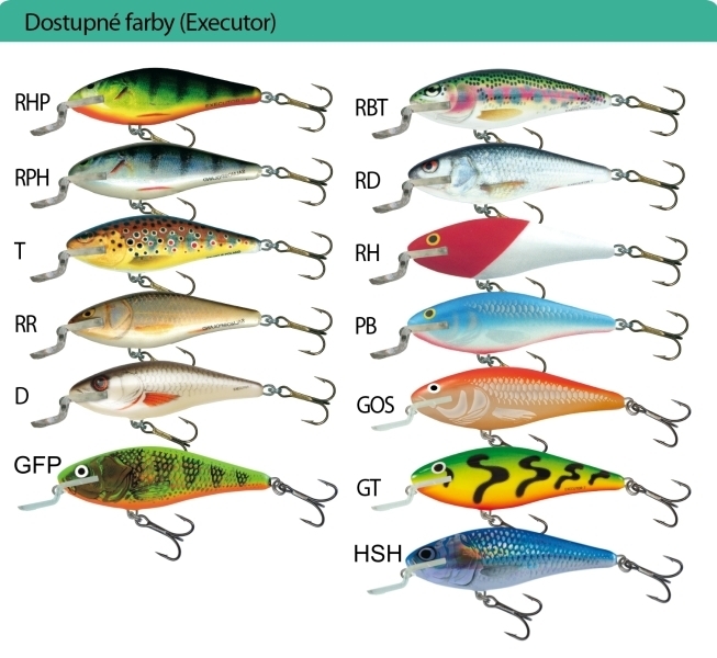 Standardní metodou pro jezerní Rybaření je navíjení Salmo executor wobler s měnící se rychlostí. Dovolte občas stoupat návnadě těsně k hladině. Pro trolling je Najlépe verze s lomenou lopatkou (málo potápivý) s dodatečnou zátěží umístěnou 0,8 až 1,2m před nástrahou na Paternoster systému. Na velkých řekách je osvědčenou metodou nahazování příčně tokem, nebo po proudu s pomalým navíjením. Pro malé toky je nejlépe nahazovat proti proudu. Salmo špičkové wobbler a umělé nástrahy Společnost Salmo byla založena v roce 1991 v Polsku. Jeho zakladateli byli Piotr Piskorski a Radosław Zaworski. Na světě neexistuje žádná jiná firma která spojuje vášeň z rybolovu a poznatky z biologie ryb tak jako Salm. Společnost Salm poprvé vystavila své výrobky a wobbler v Ženevě v roce 1995 a od té doby nevynechala žádné velké veletrhy a v současnosti má polský výrobce distributorů ve více než 40 zemích na všech kontinentech. Každá návnada je samozřejmě jednotlivě testována a nastavena tak aby podléhala důkladné, vícestupňové kontrole kvality. Více než 90% úkonů je založených na manuální práci. Špičková kvalita a poznatky z biologie ryb řadí Salmo mezi TOP výrobců umělých nástrah a woblerů.