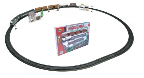 Vlak + 5 vagónů + doplňky délka dráhy 403cm na baterie se světlem v krabici