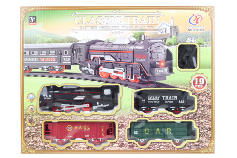 Nákladní vlaková souprava na baterie. Rozměry sestavené vláčkodráhy cca 91 cm. Mašinka je funkční na 2 AA baterie (nejsou součástí). Rozměry balení cca 32 x 25 x 4,5 cm. Věk 3+ číst celé