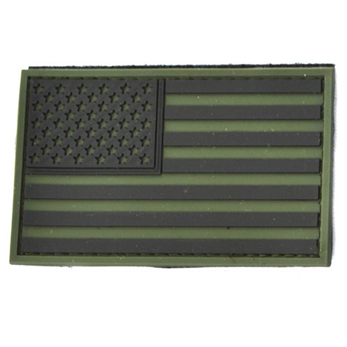 Plastová nášivka s vlajkou USA. Zelené provedení. Rozměr cca 8 x 5 cm. Rubová strana se suchým zipem. číst celé