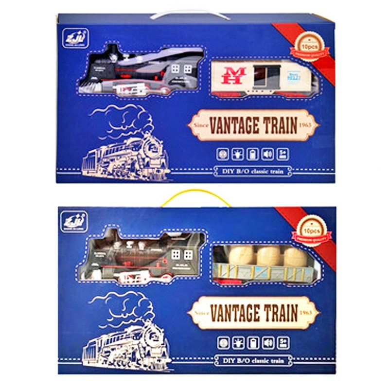 Vlaková dráha Vantage Train, v balení je kruhová dráha o průměru 78 cm, parní lokomotiva a jeden vagón. V nabídce je varianta s potravinářským vagónem, nebo vagónem s barely. Baterie do lokomotiv 4 x AAA 1,5V nejsou součástí balení. Cena je za kus. Vhodné pro děti 3+. číst celé