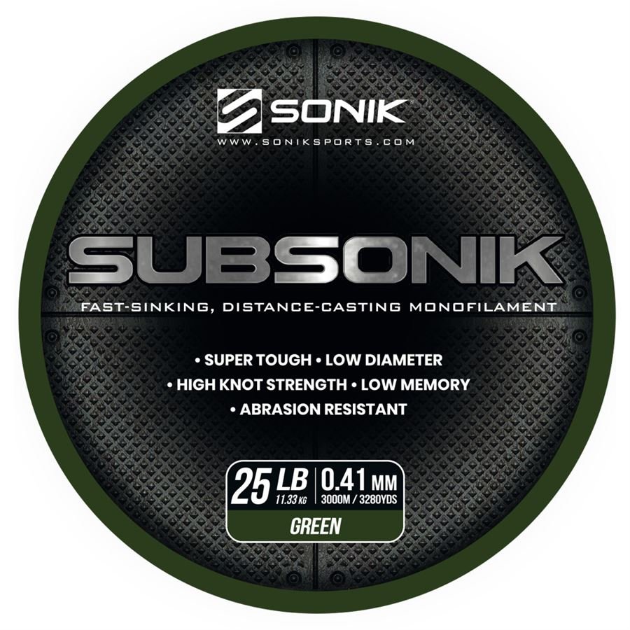Subsonik je superhladký vlasec vyrobený s využitím nejmodernějších technologií navržený pro kapraře, kteří požadují jen to nejkvalitnější vybavení. Vlákno je formováno prostřednictvím složitého procesu vytlačování, který zajišťuje maximální pevnost vlasce a jeho minimální průtažnost. Vlasec je navržen tak, aby se rychle potopil a nebyl vidět. Subsonik je vhodný pro všechny typy kaprařských technik a prezentací. Díky minimální průtažnosti se signál o záběru přenáší po vlasci velmi rychle, takže ho o to rychleji zaznamená i váš signalizátor záběru. Zároveň má vlasec vysokou míru tlumení nárazů. Je ultra hladký, což umožňuje perfektní pokládku vlasce v big pit navijácích. Všechny tyto vlastnosti dělají ze Subsoniku volbu číslo jedna pro ty, co milují dlouhé náhozy. Subsonik je zatím dostupný ve třech barvách: hnědá, zelená a camo. Průhledná verze se ale už chystá. K dispozici je pět různých průměrů pro pokrytí všech aspektů lovu kaprů. Specifikace • Vysoká pevnost v uzlu • Minimální průtažnost • Zvýšená indikace záběru • Odolnost proti oděru • Super hladký povrch • Snadné nahazování • Ultra silný • Dostupné barvy: Brown / Green / Camo