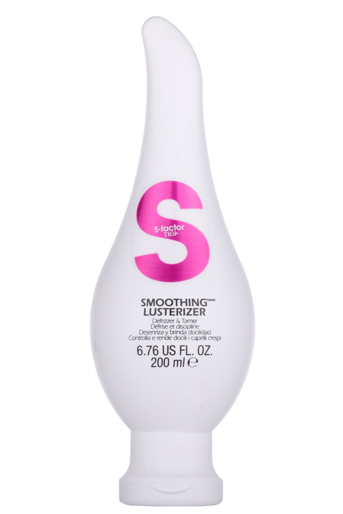**Tigi S Factor Smoothing Lusterizer** sérum na vlasy pro uhlazení. Speciální složení vlasy hydratuje, uhlazuje a zabraňuje krepatění. Poskytuje ochranu před tepelným poškozením. Zjemňuje vlasy a dodává jim oslnivý lesk. Lehké složení nezatěžující vlasy. **Použití:** Aplikujte na mokré nebo suché vlasy a rozetřete. Poté upravte jako obvykle.