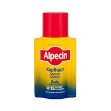 Tonikum proti spálené pokožce hlavy a proti vypadávání vlasů **Alpecin Scalp Sun Protection SPF15**. Tonikum s obsahem kofeinu účinně chrání nechráněnou pokožku hlavy před negativním slunečním zářením díky složení obohacenému o ochranný faktor. Tonikum s jemnou texturou se dobře rozdírá a vstřebává. Nemastí vlasy a pokožku hlavy. Neničí účes. Je vhodný pro opakovanou aplikaci během dne. Složení obohacené o kofeinový komplex zamezuje vypadávání vlasů, posiluje vlasový kořínek a stimuluje růst vlasů. Lze použít jako prevenci proti dědičnému vypadávání vlasů. S tonikem Scalp Sun Protection SPF15 bude Vaše pokožka hlavy zdravá a vlasy posílené. **Použití:** Otočte lahev svisle k hlavě a aplikujte rovnoměrně do pokožky. Poté jemně vmasírujte.