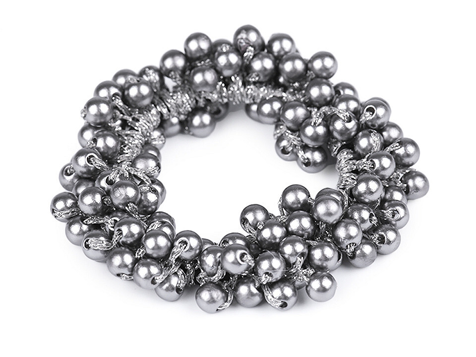Gumička do vlasů s perlami - 1 ks - 4 šedá hematit