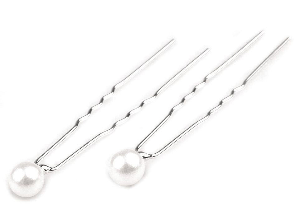 Tyto vlásenky jsou vybavené voskovanou perlou o průměru 8 mm v bílé perleti, která dodá vašemu vzhledu jemný a luxusní lesk. Jsou pevné a dostatečně dlouhé, aby bezpečně zachytily i malé množství vlasů, a tak perfektně držely i složité drdoly nebo jiné účesy na společenské akce jako plesy, svatby či návštěvy divadla.