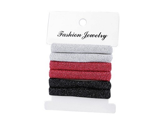 Sada gumiček do vlasů s lurexem černá, červená, stříbrná 6 ks