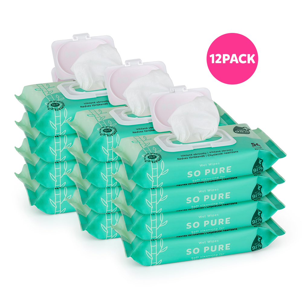 12x PETITE&MARS Ubrousky vlhčené SO PURE bambusové bioodbouratelné 56 ks (720 ks)