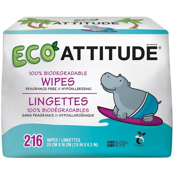 216 ks organických vlhčených ubrousků v balení - výhodná cena za ks. Hypoalergenní, 100% biodegradabilní, mohou být kompostovány. Velmi hebké a jemné, jsou doporučovány pro děti s citlivou pokožkou či trpícími ekzémy. Neobsahují parabeny, chlór ani další škodlivé chemické látky. Po použití mohou být v malém množství splachovány do toalety. Obsahují výtažek z aloe a heřmánku. Mají speciální ochranu zavírání, která brání vysychání ubrousků. Nepřítomnost škodlivých látek je testována nezávislou laboratoří.100 % recyklovatelný obal. V výrobcích ATTITUDE najdete jen složky šetrné k našemu zdraví („worry-free ingredients"), a to bez kompromisů.