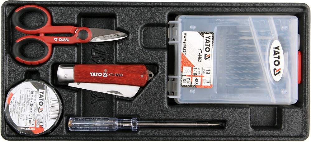 Vložka do zásuvky - izol. páska, zkoušečka, nůžky, montážní nůž,