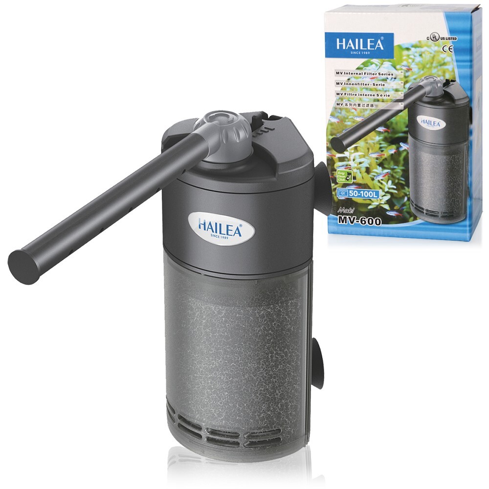 Vnitřní rohový filtr HAILEA MV-600 poskytuje dokonalou filtraci vody, zároveň čeří hladinu a provzdušňuje vodu v nádrži. Díky úspornému designu šetří prostor v akváriu.• Vnitřní rohový filtr pro velmí středně velké až velké nádrže• Úsporný design šetří místo• Filtrace biologcká (houba) a chemická (aktivní uhlí)• Regulace průtoku• Rozstřikovací trubičkaTechnická data:Výkon: 6W