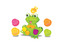 - Obsahuje velkého žabáka s otvorem na hlavičce, 4 různobarevné přelévací kelímky a nabírací rybku.