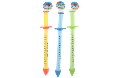 Vodní pumpa ve tvaru injekční stříkačky o velikosti cca 54 cm. Balebo v síťce. Rozměr balení cca 56 x 9,5 x 5 cm. Věk 3+ číst celé