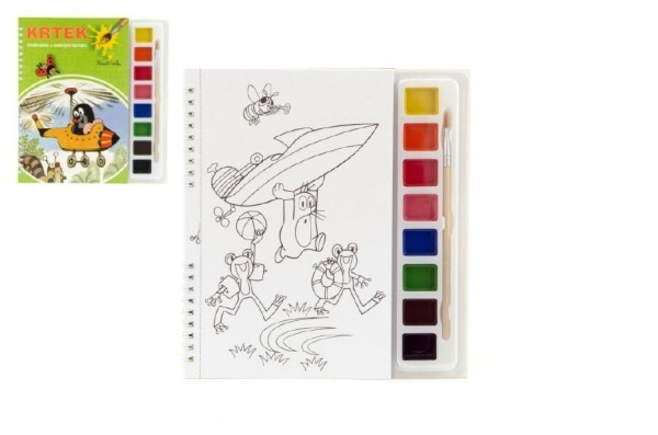 Set Krtek 2 - Omalovánky s vodovými barvami obsahuje omalovánky, ze kterých lze jednotlivé listy snadno vyjmout a na speciální podložce je přebarvovat přiloženými vodovými barvami a štětcem. Tato aktivita pomáhá dětem rozvíjet schopnost vnímání barev a trénuje správné držení štětce, což napomáhá zkvalitnění jemné motoriky. Omalovánky jsou nejen skvělou zábavou, ale přispívají i k rozvoji důležitých dovedností, které děti využijí při psaní a dalších výtvarných činnostech.