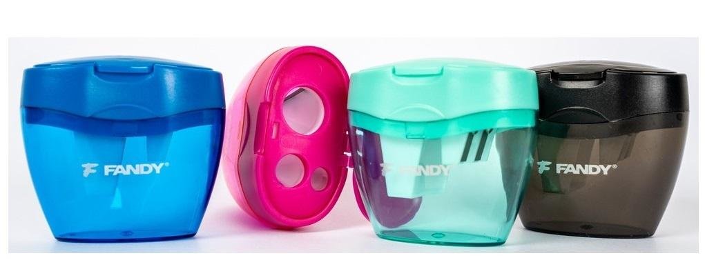Plastikowa temperówka z pojemnikiem na ścinki i wieczkiem, do zacinania cienkich (8 mm), grubych (11 mm) i super grubych (16 mm) kredek i ołówków, miks kolorów, 12 sztuk w paczce.