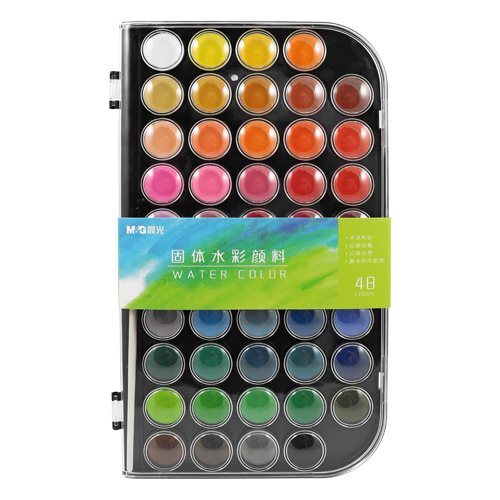 Vodové farby sú určené na maľovanie na papier a iné savé materiály, riediteľné vodou. Sada obsahuje 48 farieb o priemere 2,3 cm. Súčasťou balenia je i štetec. Sada žiarivých, vodových farieb je vhodná pre začiatočníkov i profesionálov.