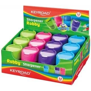 Temperówka KEYROAD Robby, aluminiowa, podwójna, z pojemnikiem, pakowane na displayu, mix kolorów číst celé