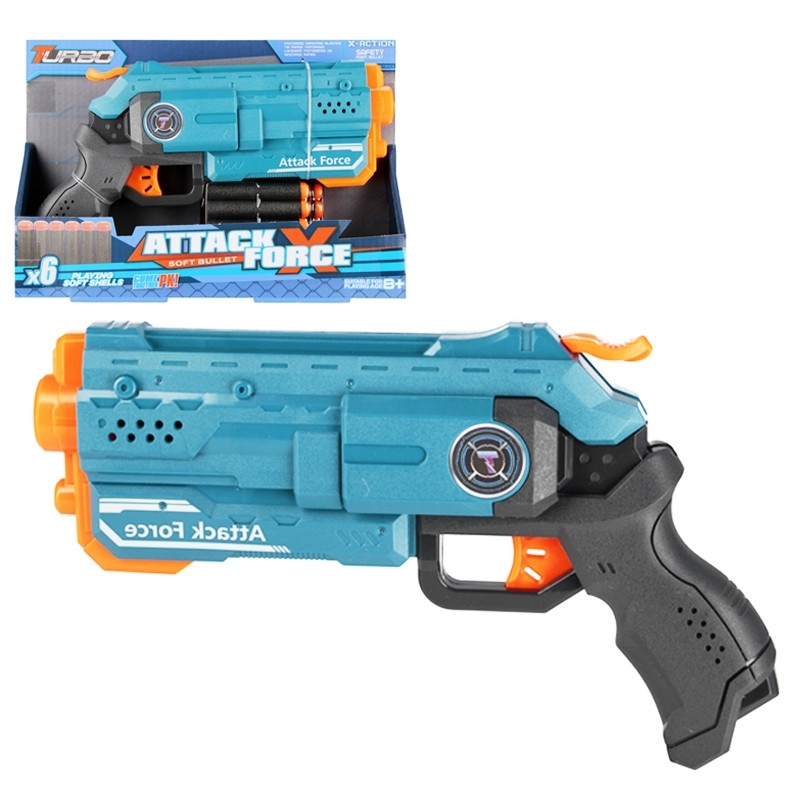 Pistole s pěnovými náboji, má rozměry 27X18X6 cm. Cena je za 1x pistoli a 6x pěnových nábojů. Vhodné pro děti 3+. číst celé