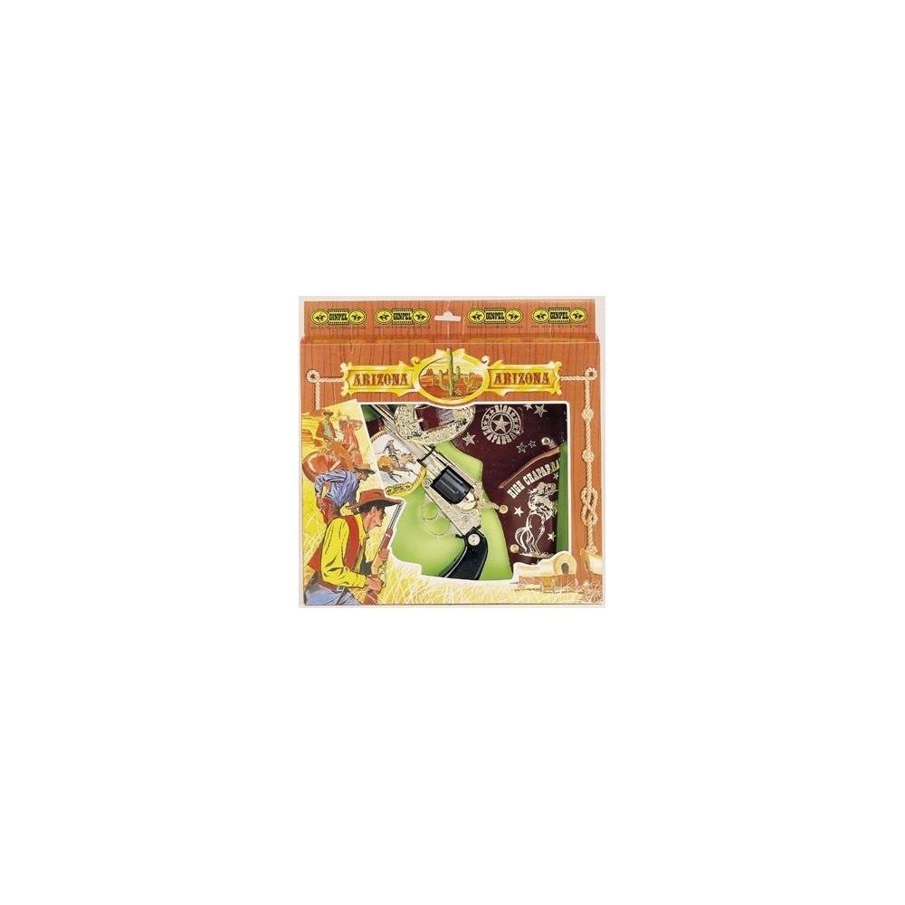 Tato sada obsahuje krásný propracovaný revolver, pouzdro, opasek o délce až 105 cm v barvě černozlaté. Revolver je na 8 nábojů. S touto parádou budeš hvězdou každého karnevalu.