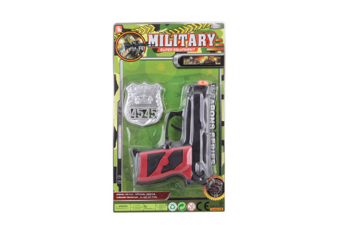 Plastová sada pistol s odznakem. Pistol není na náboje. Baleno na kartě. Rozměry balení cca 15,5x26x2,5 cm. Věk 3+ číst celé