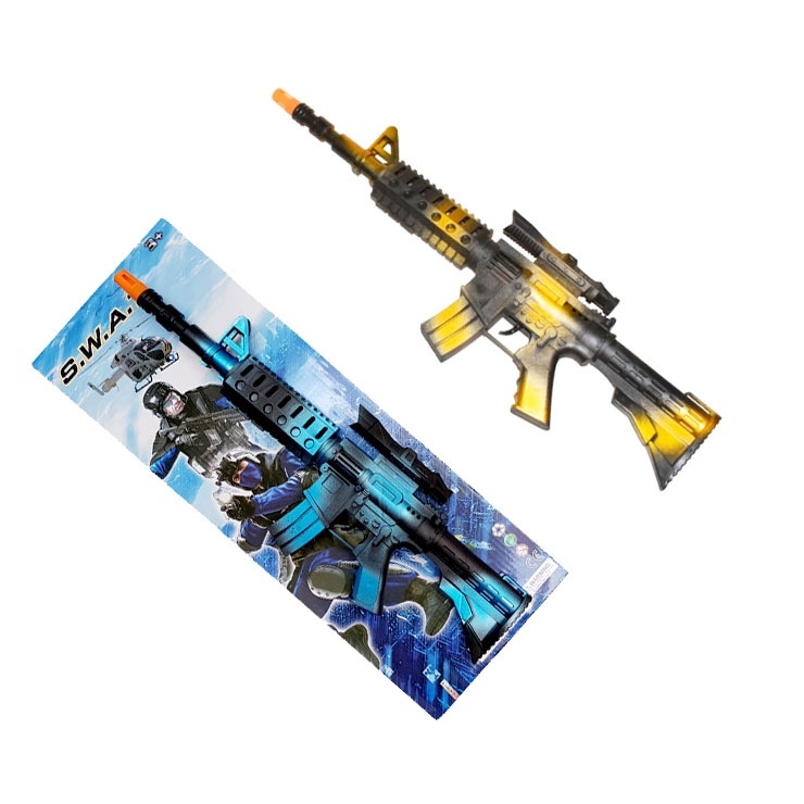 Samopal modrý je 45 cm velká, po potáhnutí kohoutku řechtá a jiskří. V nabídce je i se žlutým zbarvením.