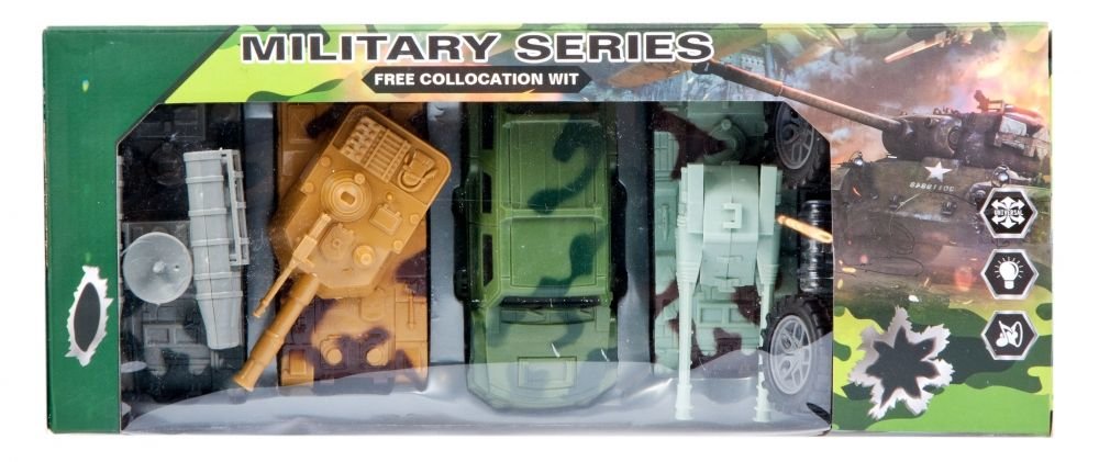 Výhody produktu: Vojenská vozidla pro speciální operace MEGA CREATIVE! Můžete libovolně přizpůsobit různé typy budov základně a jít do boje. Vystřelte rakety na obranu svých vojáků a pomozte jim s vašimi vozidly! Hračky vyrobené z plastu. Hračky mají světelné a zvukové efekty. Sada obsahuje: 1 x základní vozidlo, na které umístíte vybranou konstrukci, 4 struktury: 1 x obrněný tank, 1 x raketové vozidlo, 1 x protiletadlové vozidlo, 1 x obrněná vozidla. Hračka určená pro děti od 3 let. Vyžaduje 2 x baterie AA1,5V - není součástí dodávky. Rozměry produktu základna vozidla: (D x V x H) (cm) 11,5 x 5,5 x 8; Hmotnost produktu (kg) 0,10 kg. Rozměry balení (D x V x H) (cm) 33 x 9 x 13,5 Hmotnost balení (kg) 0,14 kg.
