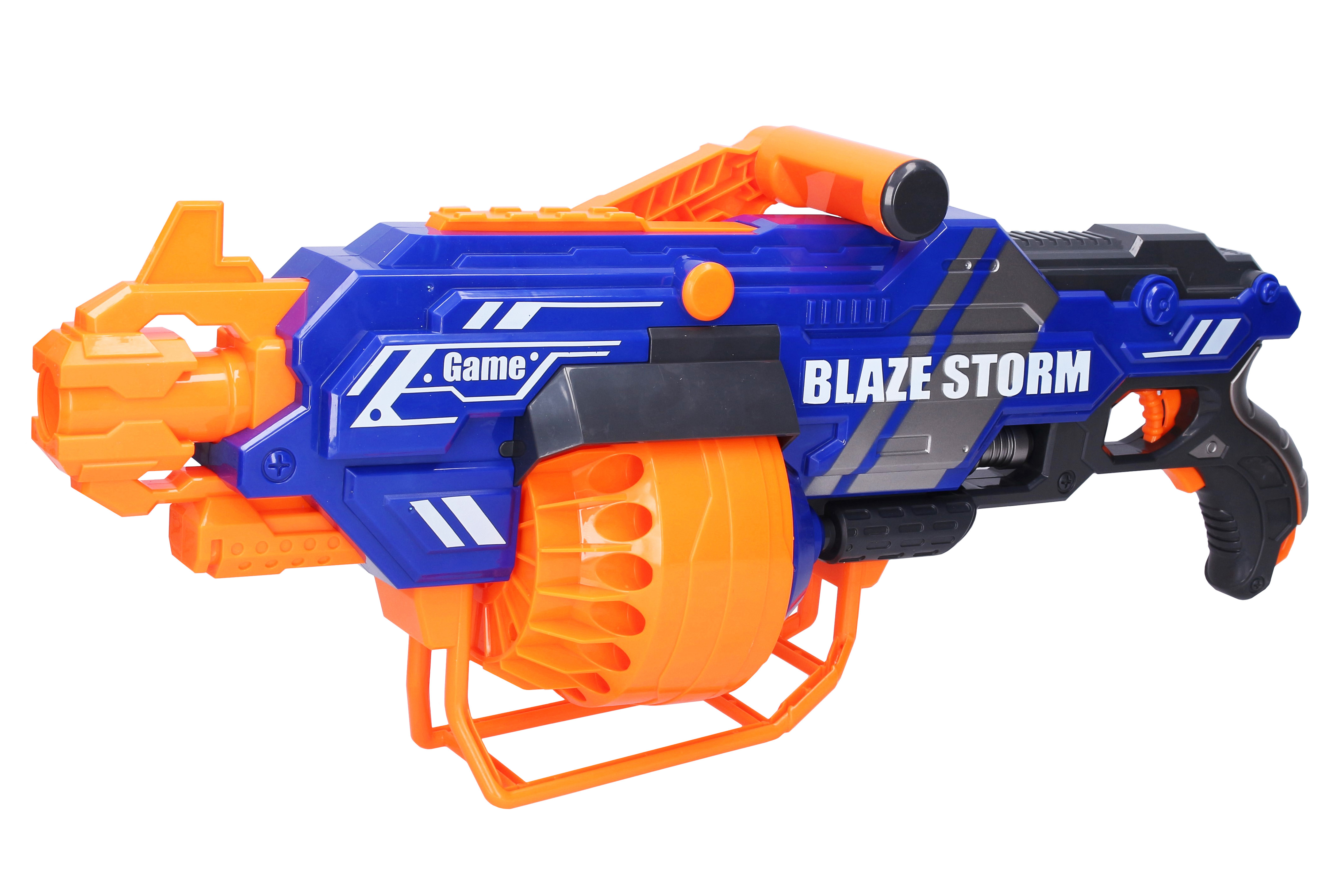 Puška na pěnové náboje rotační samopal. Rozměry 59 x 14 x 23,5 cm. Balení obsahuje 40 pěnových nábojů (20 x s přísavkou, 20 x s plastovou hlavou). Rotační zásobník na 20 nábojů. Návod na používání na obalu. Dvířka na odstranění záseků se nachází na pravém boku. číst celé