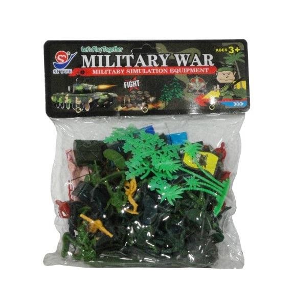 Zestaw figurek wojskowych. W zestawie m.in. figurki żołnierzy, flagi, czołgi. W zestawie także znajduje się składana mata na której można rozkładać figurki. Produkt zapakowany w przezroczysty worek. Produkt przeznaczony dla dzieci od 3 lat. Podane wymiary są wymiarami opakowania.