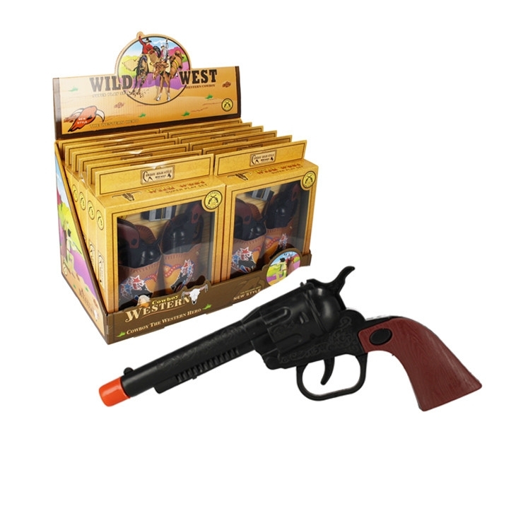 Pistole kovboj, má zvukový efekt, který zazní po stisku spouště. Obsah sady je 2x pistole. rozměry produktu jsou 20x9x4cm. Baleno po 12 kusech. Cena za 1 sadu. Výrobek je určen pro děti ve věku 3+. číst celé