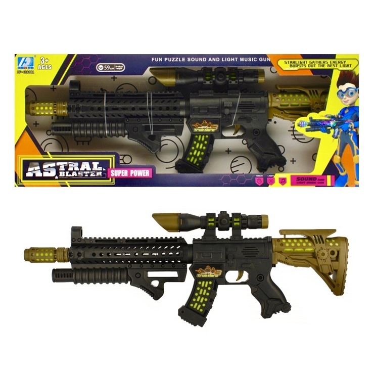 Puška má zvukové a světelné efekty - při stisku spouště slyšet zvuk výstřelu, má pohybové efekty - vibrace při výstřelu. S puškou spatříte cíl z největší vzdálenosti. Při pravidelném hraní se z vás stane vynikající odstřelovač. Balení obsahuje pušku. Rozměry balení jsou 57x25x6cm. Vyžaduje 3 x AALR06 baterie - nejsou součástí sady. Hračka je určena pro děti ve věku 3+.