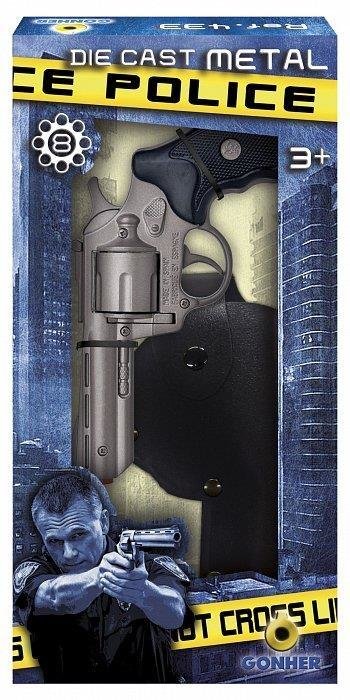 Pro všechny fanoušky her a sběratelských kousků: Metalový policejní revolver s pouzdrem od Gonher!