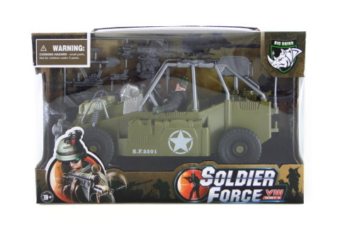 Plastová sada obsahuje džíp, vojáka a další zbraně a náčíní. Rozměry džípu cca 23 x 14 cm. Rozměry balení cca 28 x 18 x 11,5 cm. Věk 3+