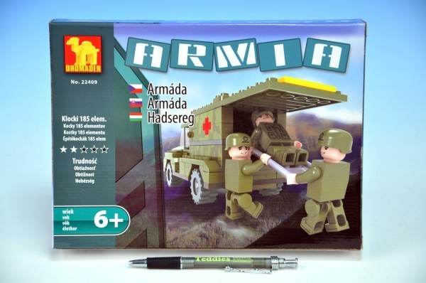Stavebnice Dromader Vojáci Auto 22409 185ks v krabici 22x15x4,5cm