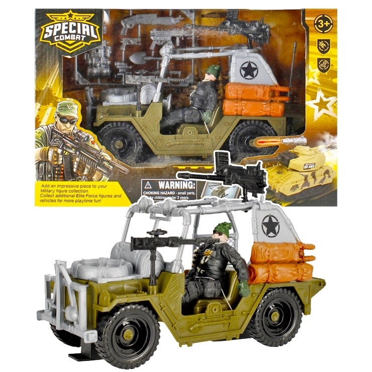 Výhody produktu: rozvíjí kreativitu a představivost dítěte, autíčko má pohyblivé části, figurka vojáka má pohyblivé ruce a nohy.
