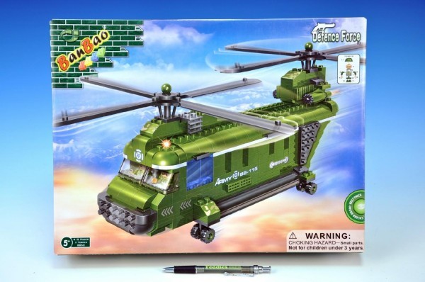 Stavebnice BanBao Vrtulník vojenský 415ks + 3 figurky v krabici 40x30x7cm
