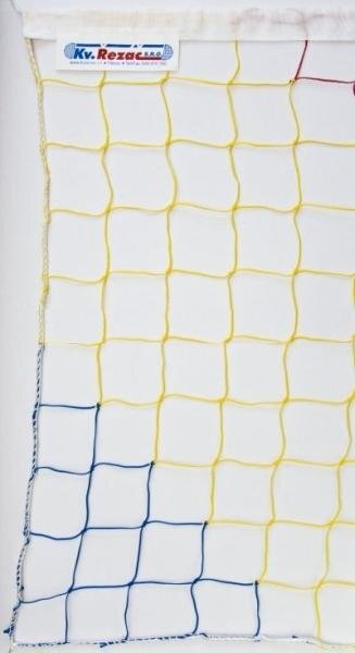 Síť VOLLEYBALL plážová: Beachvolejbalová síť pro volný čas. Barevná uzlová síťovina z polypropylenu 2 mm, oko 100 mm. Nahoře PES bílá páska 50mm protažená šňůrou o délce 12,5 m. 4 úvazky. Dole obšití.
