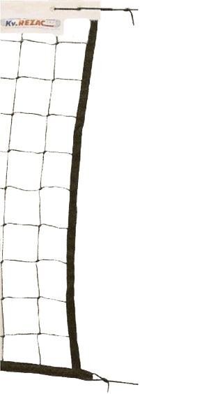 Volejbalová síť pro běžné účely. Uzlová síťovina černá z polypropylenu 2 mm, oko 10 cm. Horní okraj je oblemován polypropylenovým bílým popruhem, hotová šíře lemování 5cm. V popruhu je protaženo ocelové lanko o délce 12,5m, na jednom konci se smyčkou. Boky jsou lemovány PP černým popruhem, hotová šíře lemování 2cm. Spodní okraj je obšitý. Síť je nahoře i dole opatřena úvazky o délce 2m. Součástí sítě jsou vytyčovací pásky šíře 5cm.